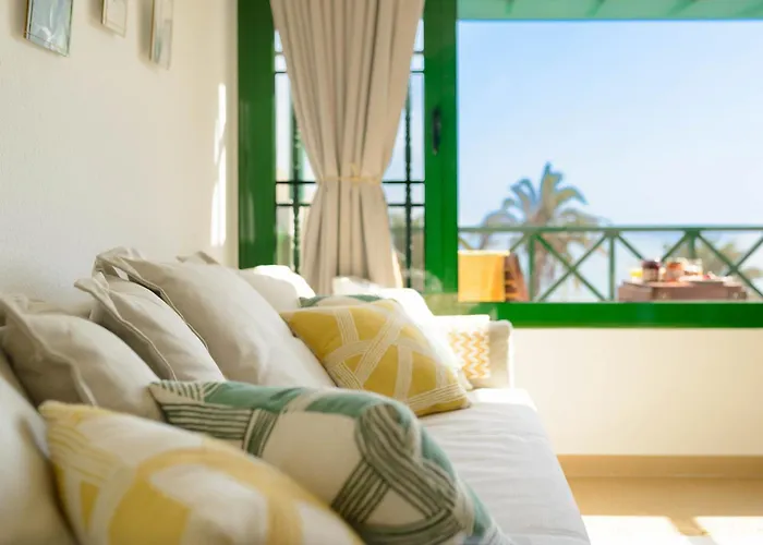 Das am Strand 50 m^2 große Delightful Front Beach Apartment. Sunrise Views! liegt im Stadtviertel Playa del Aguila von Playa Del Aguila und bietet Luxus wie ein Solarium und ein Außenschwimmbad. Paseo Marítimo ist ungefähr 10 Autominuten vom Apartment entfernt, während Golfplatz Maspalomas ungefähr 15 Fahrminuten von hier entfernt liegt.